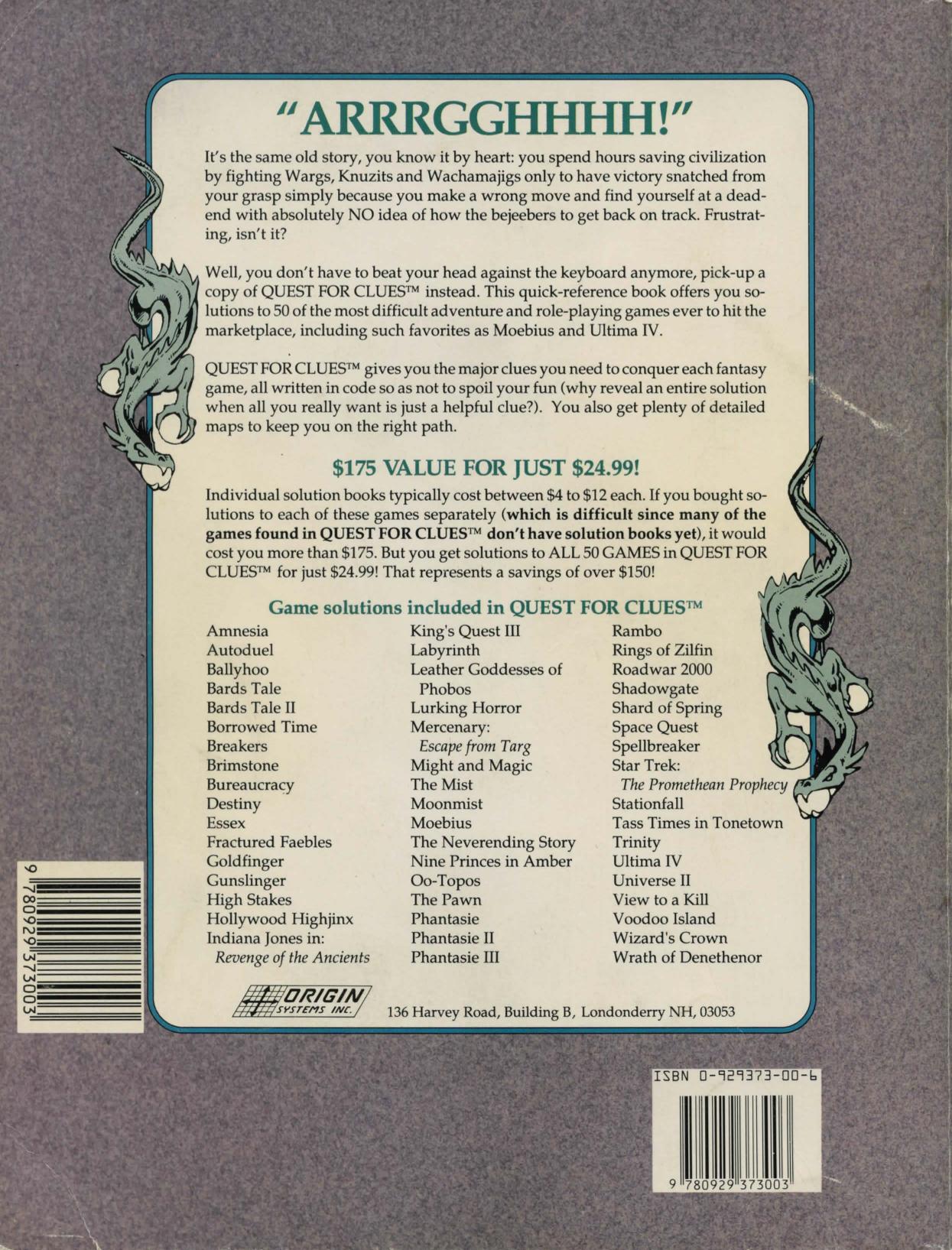 Ce volume contient les solutions de Amnesia, AutoDuel, Ballyhoo, The Bard's Tale, The Bard's Tale II, Borrowed Time, Breakers, Brimstone, Bureaucracy, Destiny, Essex, FrakTured FaebLes, Goldfinger, Gunslinger, High Stakes, Hollywood Hijinx, Indiana Jones : Revenge of the Ancients, King's Quest III, Labyrinth, Leather Goddesses of Phobos, The Lurking Horror, Mercenary, Might and Magic, Mist, Moonmist, Moebius, Neverending Story, 9 Princes in Amber, Oo-Topos, The Pawn, Phantasie 1, 2 & 3, Rambo, Rings of Zilfin, Roadwar 2000, Shadowgate, Shard of Spring, Space Quest, Spellbreaker, Star Trek : The Promethean Prophecy, Stationfall, Tass Times in Tone Town, Trinity, Ultima IV, Universe 2, A View to a Kill, Voodoo Island, Wizard's Crown et Wrath of Denethenor.