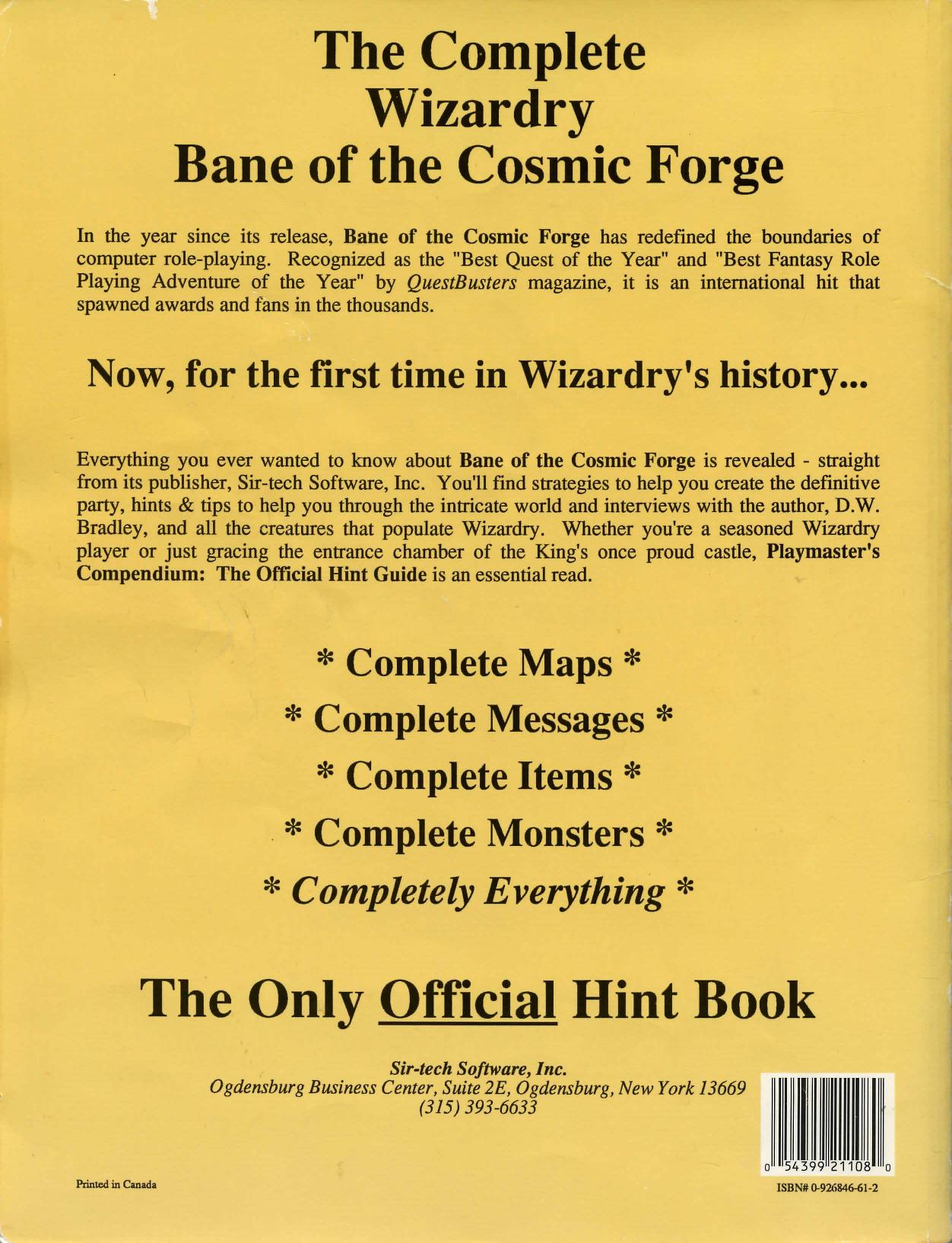 WIZARDRY 6 : BANE OF THE COSMIC FORGE - HINT GUIDE