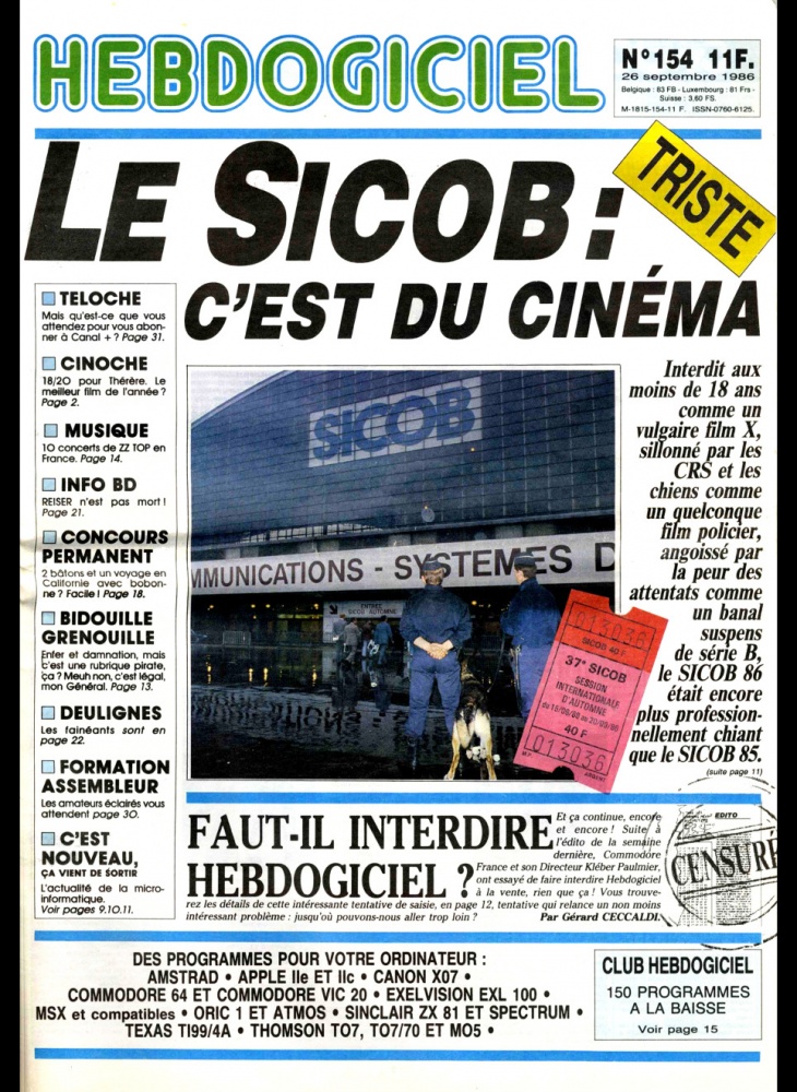Numéro précédent : Numéro 153 - 19 Sept 1986