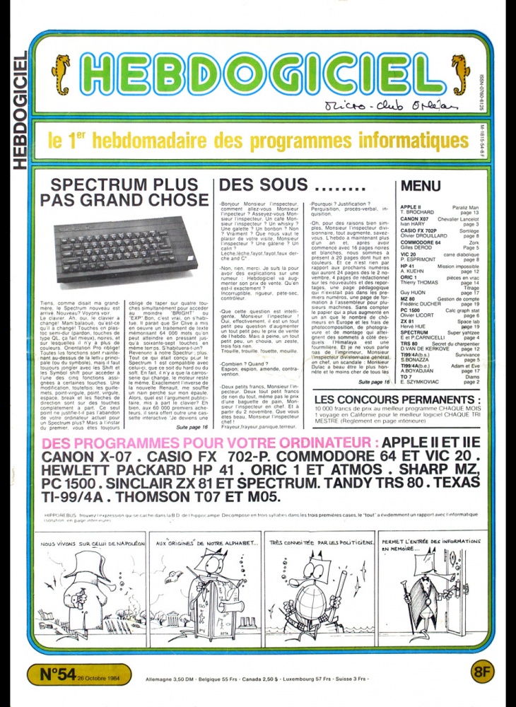 Numéro précédent : Numéro 53 - 19 Oct 1984