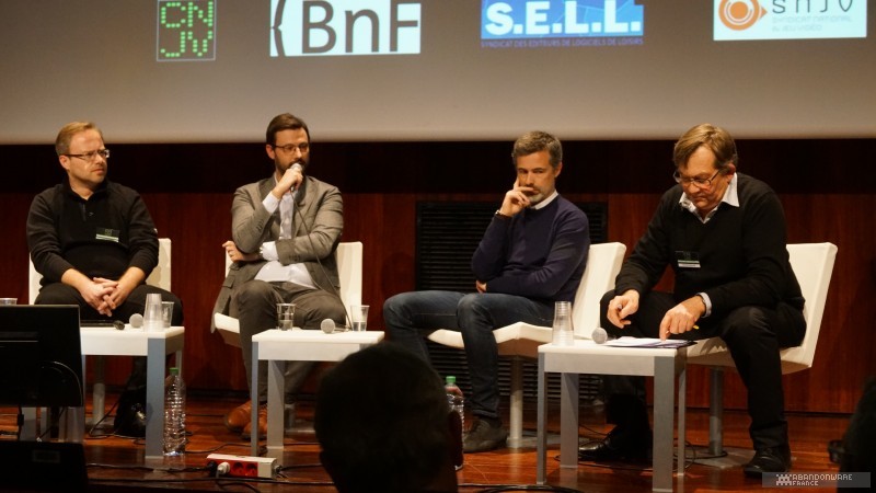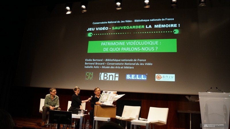 Après une intervention de Bruno Bonnell en vidéo, car il ne pouvait être des nôtres, la première session se termine avec le SELL, le SNJV et Laurent Cluzel, qui présentent la vision des éditeurs et des créateurs. Laurent Cluzel nous raconte avoir pris conscience de l'importance de cette tâche de sauvegarde de la mémoire, d'une part parce que certaines de ses disquettes contenant des projets de jeux inachevés sont devenues illisibles, et d'autre part parce qu'il compte déjà trois décès parmi ses connaissances du milieu du jeu vidéo, et leur travail est perdu à jamais. Bertrand Brocard, lui, présente une étude sur l'archivage, étude qu'il a réalisée auprès des éditeurs lors de la Paris Games Week un mois plus tôt, montrant que les éditeurs n'avaient que peu de temps et de moyens à y consacrer, quand ils ont l'idée de le faire, mais qu'ils étaient prêts à collaborer si on les assistait dans cette démarche.