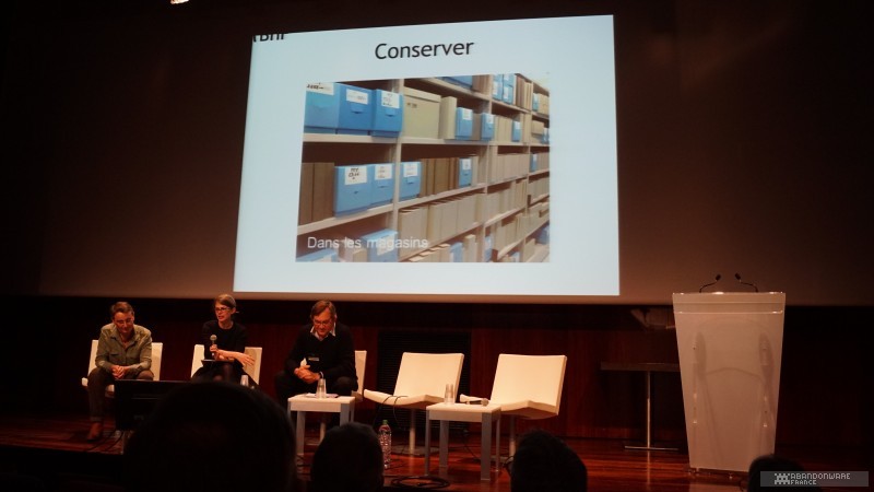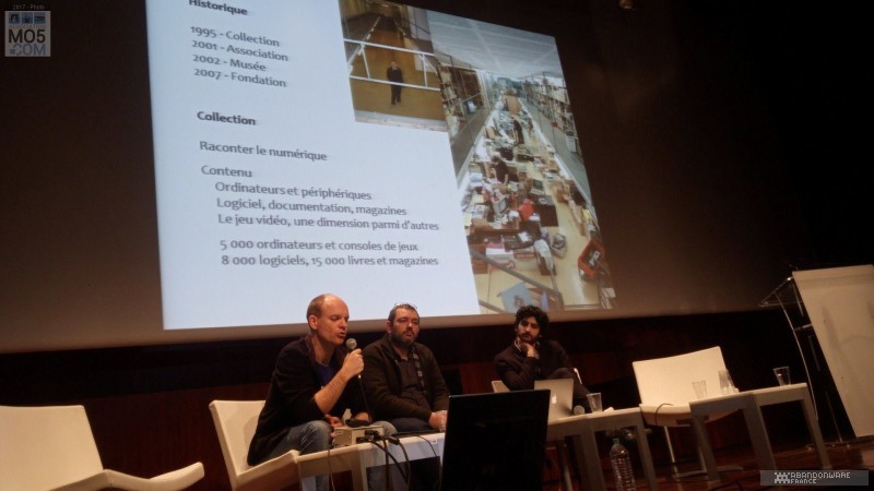 Le colloque continue (et je suis nettement moins tendu). Avec Alexis Blanchet, Colin Sidre (chercheurs) et Yves Bolognini (Musée Bolo), la conservation et le pourquoi de cette conservation sont à l'honneur. Denis Lechevalier et Jean-Philippe Humblot (BnF) nous expliquent les difficultés techniques rencontrées lors de la création d'images-disques. On y apprend l'existence de logiciels capables d'analyser en profondeur l'état d'une disquette, les moyens de récupérer le maximum de données, la démarche adoptée si une disquette originale contient un virus (réponse : on le garde !)... Enfin, le colloque s'achève avec les grandes associations (Mo5, Silicium et WDA) qui débattent avec Jean Zeid (France Info) de la conservation des vieux micros et consoles, du conflit entre purisme et utilisation de l'émulation...