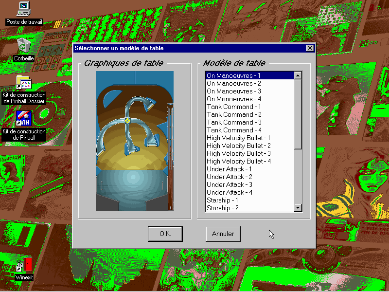 Avant de vous lancer dans la création d'une table avec vos graphismes, vos musiques et vos paramètres personnels, il faudra apprendre à créer une table à partir des 32 modèles préexistants.