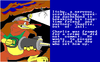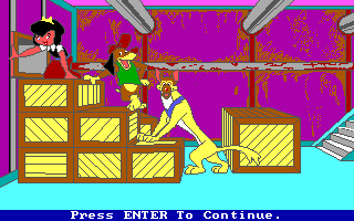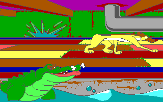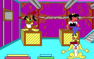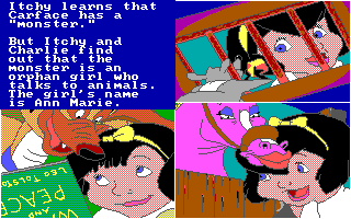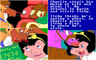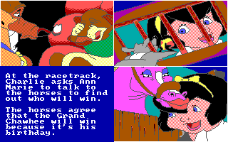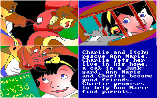 C'est une compagnie fraîchement établie, Merit Software, qui a obtenu les droits d'adaptation en jeu vidéo. Deux softs en ont été tirés : un jeu de coloriage appartenant à leur gamme Electric Crayon (dont il existe une version parlante exclusive pour le CDTV, ce sera même un des titres de lancement de l'ordinateur multimédia de Commodore) et ce jeu pour PC et Amiga, qui prétend refaire vivre l'histoire à ses jeunes utilisateurs. Sous la double contrainte d'un scénario peu propice à une adaptation vidéo-ludique et une cible très jeune qui n'apprécierait pas un gameplay trop évolué, les développeurs ont recouru à la solution du désespoir, à savoir les mini-jeux. Il y en a dix, et ils sont tous aussi peu imaginatifs que mal réalisés : des labyrinthes, des tours de Hanoï, un pendu, un casse-briques, une course de rats mal animée, un combat de chiens... Je suis même étonné qu'ils n'aient pas casé un taquin ou un jeu de mémoire. Vous pouvez essayer les épreuves indépendamment pour vous entraîner, mais il faut toutes les faire dans l'ordre pour voir les écrans qui racontent l'histoire - un bon point dans ce type de programmes, qui partent toujours du principe que le joueur connaît déjà le film.