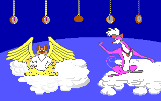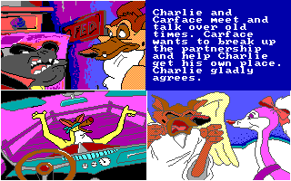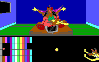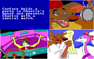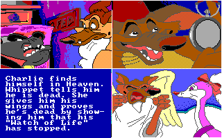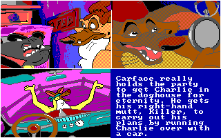 La maniabilité est lourde et peu intuitive ('Espace' pour naviguer entre les options ou les vignettes, 'Entrée' pour valider), et les touches varient selon les épreuves. Pour les tours de Hanoï, il faut utiliser 'haut' et 'bas' pour prendre ou déposer une pièce, pour le puzzle, une pièce ne peut être posée qu'à son emplacement exact, et si vous ne le trouvez pas il faut apputer sur '-' pour repasser à la sélection de pièce, pour le pendu il faut évidemment appuyer sur les lettres, et dans le combat de chiens final, il faut marteler la touche 'haut' pour frapper, en appuyant sur 'droite' de temps en temps pour essayer de faire reculer l'adversaire. Du côté de la réalisation, les graphismes EGA parviennent honorablement à reproduire le style du film, les animations déjà moins. Seules les extensions sonores Covox sont reconnues, sinon il faut passer par le haut-parleur interne du PC. Les développeurs sont parvenus à lui faire interpréter des extraits sonores digitalisés du film, ce qui serait appréciable si ces extraits n'étaient pas étouffés par de la friture ou joués à la mauvaise vitesse - s'il y a un réglage DOSBox pour avoir un son décent, je ne l'ai pas trouvé. Bref, un logiciel raté et totalement oubliable - sauf pour les pauvres gamins qui se le sont fait offrir à Noël.