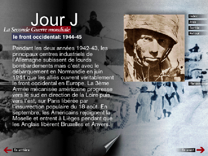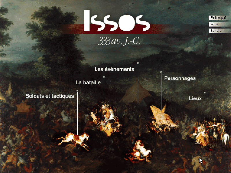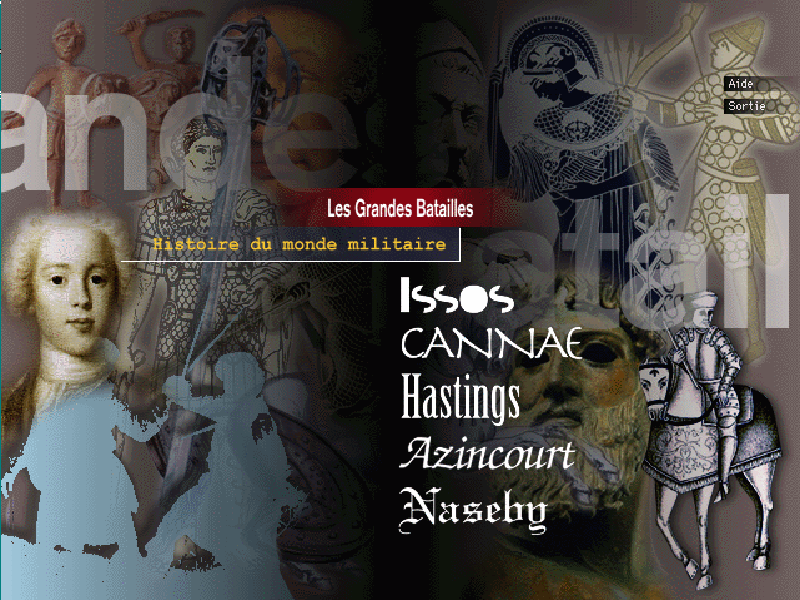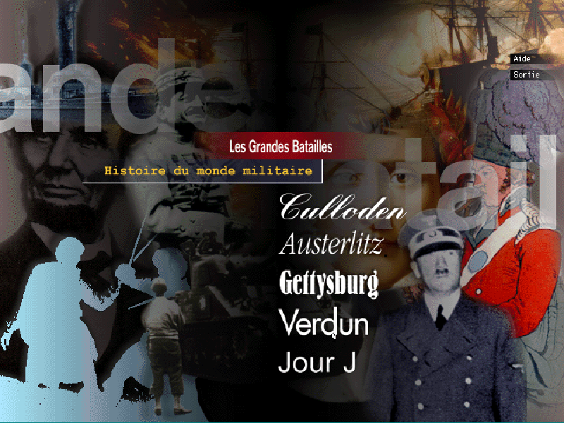 Du 1er novembre 333 av. J.-C. au 6 juin 1944, d’Alexandre le grand à Eisenhower en passant par Napoléon découvrons dans ce CD-Rom plus de 2000 ans de guerre à travers 10 batailles (Issos, Cannae, Hastings, Azincourt, Naseby, Culloden, Austerlitz, Gettysburg, Verdun et le Jour-J) de l’histoire de l’humanité.