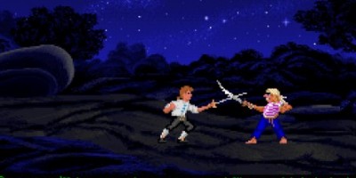 Question sport, il en est un que j'aimerai à titre personnel pratiquer plus : l'escrime. Mais il est vrai qu'en milieu scolaire, ce n'est pas le plus répandu. Si en plus, on pouvait le mélanger à un échange d'insultes (gentilles), alors ce serait parfait. Mais cela n'est possible aujourd'hui que dans une certaine série de jeux, dont le premier épisode fête ce mois-ci ses 25 ans. Et comme personne (pas même son créateur Ron Gilbert), ne connaît la date exacte, j'ai choisi ce samedi pour souhaiter un très bon anniversaire à The Secret of Monkey Island. Un quart de siècle déjà que le secret de l'Ile aux Singes fait rêver les aventuriers en herbe... Le temps passe si vite !