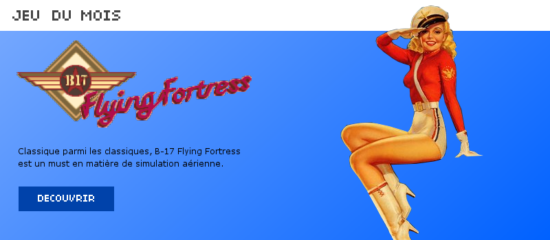 Nous sommes le premier samedi du mois, et donc, c'est le jour du jeu du mois. Nous avons donc fait un petit sondage auprès de nos tipeeeurs que nous remercions mille fois, et nos habitués sur le forum, que nous remercions aussi. Il avait un choix à faire, parmi 3 jeux que l'équipe avait sélectionné. Il y avait du Harry Potter, il y avait un point'n'click... et cela nous a surpris mais pas tant que cela, c'est une simulation qui gagne. Mais quelle simulation ! C'est là qu'on voit les connaisseurs et les passionnés. Ils ont du gout ;) Ce jeu est donc B17 Flying Fortress, de Microprose, un jeu complexe mais passionnant de 1992. Attention, manuel indispensable !