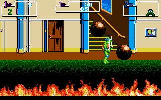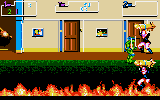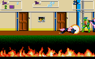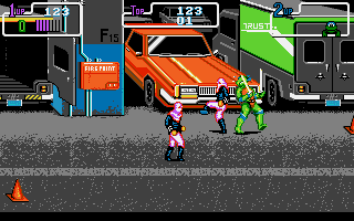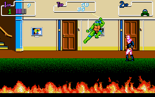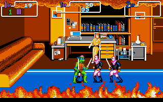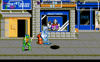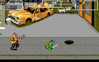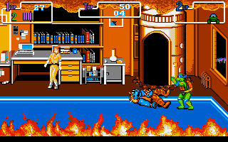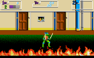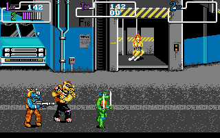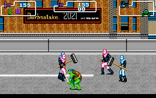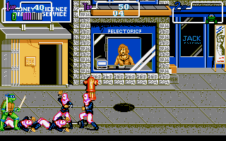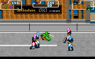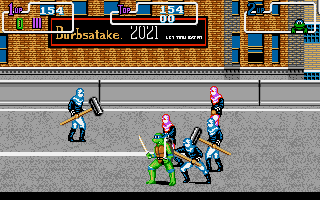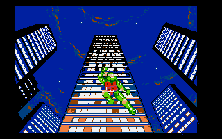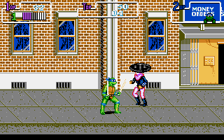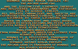 PrésentationRetrouvez nos 4 célèbres teenagers à carapace bouffeurs de pizzas dans cette adaptation officielle du jeu d'arcade. On a donc droit à un beat'em all classique mais dans l'univers des TMNT, bon évidemment la version arcade est plus belle, permet de jouer à 4 et est plus maniable, mais cette version PC de 1991 ne démérite pas par rapport à d'autres adaptations de l'époque. On peut jouer à 2, au clavier ou au joystick, sur la célèbre musique (qualité AdLib).