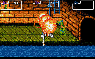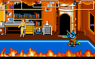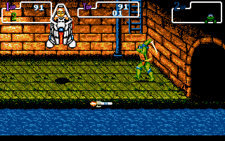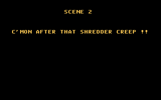 Retrouvez nos 4 célèbres teenagers à carapace bouffeurs de pizzas dans cette adaptation officielle du jeu d'arcade. On a donc droit à un beat'em all classique mais dans l'univers des TMNT, bon évidemment la version arcade est plus belle, permet de jouer à 4 et est plus maniable, mais cette version PC de 1991 ne démérite pas par rapport à d'autres adaptations de l'époque. On peut jouer à 2, au clavier ou au joystick, sur la célèbre musique (qualité AdLib).