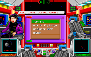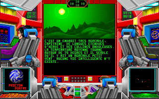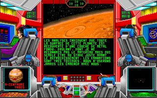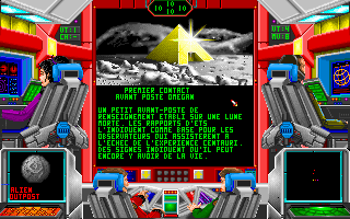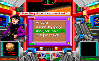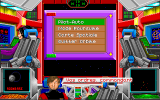 Attention, il y a un bug : vous ne pouvez pas vous mettre en orbite autour de la première planète de chaque système, ce qui peut être très gênant pour suivre le scénario (la sélection de l'option "mise en orbite" par la souris n'a aucun effet), mais vous pouvez quand même orbiter et donc éventuellement vous téléporter sur les premières planètes des systèmes en choisissant l'option "mise en orbite" à l'aide du raccourci clavier (touche 'O').