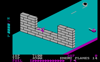 Lancez le fichier ZAXXON.COM. Réduisez bien le nombres de cycles pratiquement jusqu'au minimum. A 300 cycles, le jeu est encore un peu rapide.