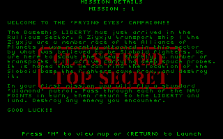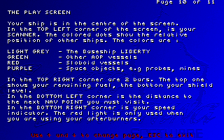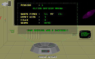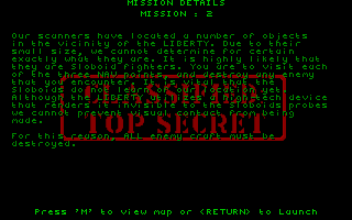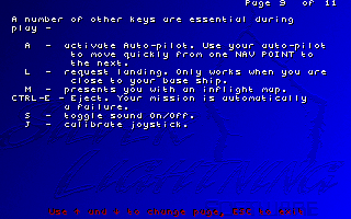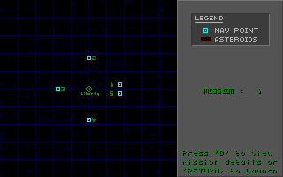 Voici un jeu qui vous propose donc, dans un univers spatial, de remplir des missions ! Missions d'escorte, d'attaque, etc, vous devrez avec votre petit vaisseau vous rendre aux points d'objectifs indiqués par une croix et une distance numérique, puis retourner sur votre vaisseau mère pour valider la mission (touche 'L' pour rentrer)... en prenant évidemment soin de vous débarrasser de vos ennemis rencontrés en chemin! Si vous êtes tranquille, vous pourrez même utiliser un Autopilote 'A' qui vous permettra de voyager plus rapidement jusqu'à votre point de chute suivant !