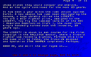 Vous oeuvrez en tant que pilote d'une navette, l'ADC (Absolute Destruction Craft), qui a permis la 1ère victoire terrienne il y a 28 ans. Nous sommes en 2268 : un vaisseau Sloboid a récemment été aperçu dans le secteur RALLIOUS, et le LIBERTY envisage dès lors de déployer sa première mission en cet endroit... dans l'espoir d'enfin retrouver la base des Sloboids... dans l'espoir de détruire les Sloboids... dans l'espoir d'enfin achever l'opération Star Hammer...