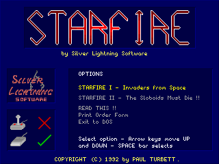 Simple comme bonjour, utilisez le fichier STARFIRE.COM pour démarrer le menu du jeu et choisir :
