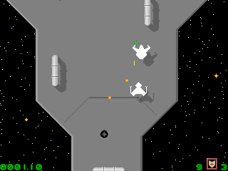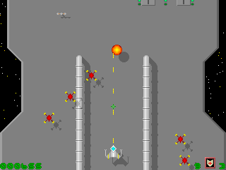 D'une réalisation simple mais efficace, graphismes sobres comme on les aime, et animation sans heurts, le jeu se révêle plutôt amusant ! Beaucoup d'action, la particularité du vaisseau c'est qu'il ne s'arrête jamais et continu toujours sur sa lancée à moins de rencontrer un bord de l'écran ou de changer de direction - 2 vitesses pour chaque directions. Des niveaux somme toute classique dans leur déroulement : niveau, ennemis, boss, tout comme d'habitude ! Une petite adaptation à la maniabilité de votre joujou, et vous vous rendrez compte que la difficulté est assez bien dosée, pas de trop tout de même ce qui est déjà bien pour tout le monde, et surtout pour moi !