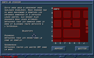 Le jeu gère aussi votre progression personnelle, si vous ne commencez que comme simple pilote, vous aurez vite plusieurs unités de combats sous vos ordres, puis, lorsque vous aurez atteint le grade de colonel, vous aurez accès à la carte stratégique pour organiser défense et attaque selon vos choix. Et une fois général, vous aurez accès aux cartes stratégiques de tous les continents.