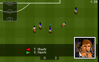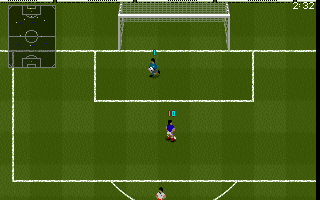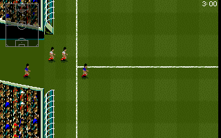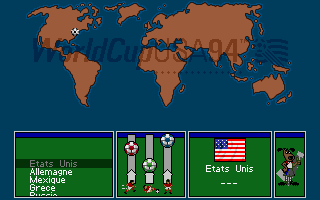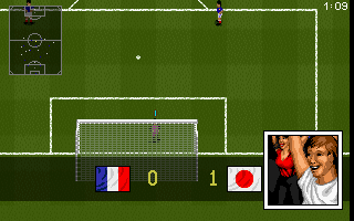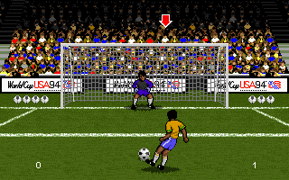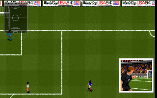 RéalisationLe jeu est graphiquement réussi, les sprites étant plus grands que dans la plupart des jeux de foot de l'époque. On a droit à une vue de dessus légèrement isométrique très lisible. Pour les contrôles, vous pouvez jouer au clavier ou au joystick, le jeu gérant 2 boutons (fait rare sur PC). Le joystick est quasiment obligatoire, puisque le jeu demande dès l'installation de le calibrer. Au niveau sonore, rien de bien transcendant : une musique reprenant le thème officiel de la compétition, quelques bruitages essentiels (sifflet, cris de la foule...) mais pas extraordinaires.