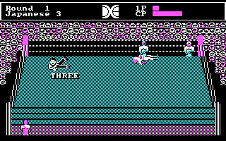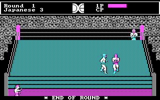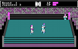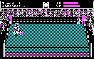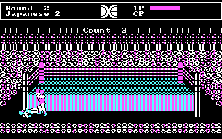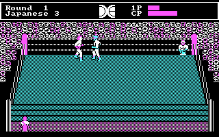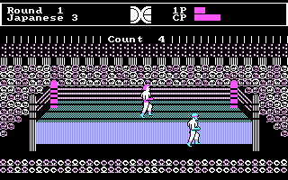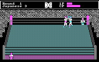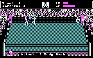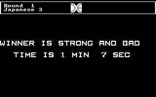 - Graphismes CGA 4 couleurs, pas jolis mais relativement lisibles, on repère facilement les différences entres nos lutteurs.