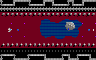 Quelques heures plus tard...... Hmmm ? Non, cuisine.tv, c'est sur l'autre canal ! Ah oui, Xerix ! - eXtended Enemy Response and Infiltration eXperiment. Créé par Brendan Reville. Un shoot horizontal sur 2 niveaux, avec des ennemis tous ronds qui rebondissent partout. Des tourelles qui dégomment toutes en diagonale... Et une petite histoire simple, comme tout le reste : trop simple. Très prévisible et vite torché comme ma recette, avec 2 modes de difficulté : un avec les vies infinies, l'autre avec 3 vies.