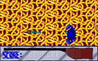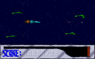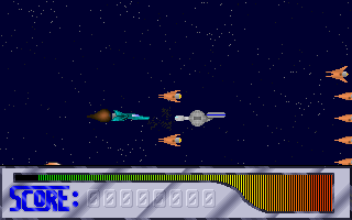 Sean Wachob (et cie), ont développé en 1992 un nouveau jeu : XAP. Derrière ce nom plutôt étrange (avec lequel je vous laisserai voguer à toute imagination personnelle) se cache un shoot'em'up horizontal, un genre qui commence à bien se répandre à cette époque. Histoire inconnue à l'heure actuelle, XAP c'est : un vaisseau qui vole, des ennemis qui en raffole, et un gun pour tout dégommer. Classique quoi. A travers 4 niveaux (ici disponibles), vous devrez vous frayer un chemin parmi les vagues de robots et d'aliens qui rappliquent sur tout l'écran, en évitant les tirs, et en faisant mouche pour augmenter le score. Attention à la barre de vie qui dégringole au fur et à mesure des contacts avec les ennemis. Les différents niveaux se déroulent un peu à la manière de Thunder Force 4 sur Megadrive (pour ceux qui connaissent), c'est-à-dire que le vaisseau peut se déplacer sur tout l'écran, mais il est aussi possible de faire descendre le niveau à la verticale : les zones de jeu deviennent plus vastes, et c'est un petit plus qui prime pour l'originalité, même si cette caractéristique n'est pas (encore ?) bien justifiée niveau jeu. En effet, le plus gros des ennemis se situe dans la zone supérieure principale, laissant plus désertique la partie basse.
