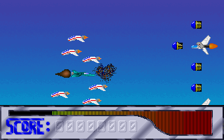 La bande-son s'en tient, pour cette version démo, aux bruitages, classiques et peu nombreux. Pas de musique, mais celle-ci semble prévue par la suite. Le jeu n'est pour le moment pas bien difficile, on en fait vite le tour. Mais disons que dans l'immédiat, c'est surtout pour se faire une idée. Et bien sûr on peut déjà se faire une petite idée de la chose, et au final il en ressort un shoot assez classique, ni plus, ni moins. De quoi passer un petit moment pour s'amuser, malgré le manque de diversité. Un peu de scoring pour le challenge. A essayer.
