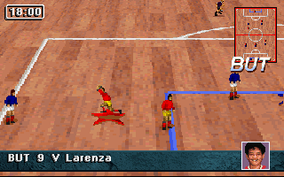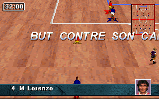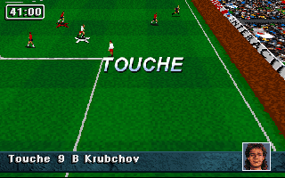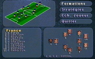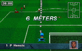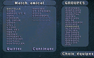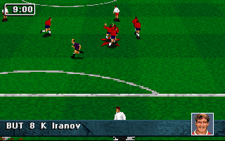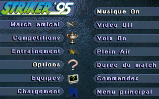 PrésentationStriker '95 est la suite de Striker, le jeu de football de Rage Software qui avait été éclipsé par Sensible Soccer à sa sortie. Au menu, beaucoup d'améliorations : on retrouve la vue en perspective très proche du terrain, mais cette fois les personnages sont plus fins et réalistes, ce ne sont plus des sprites dessinés à la main mais des digitalisations qui rappellent les personnages de Flashback. Leurs mouvements sont fluides et naturels, à l'exception de leurs glissades un peu exagérées. La puissance des coups est également contestable : un coup de pied de but peut très bien traverser tout le terrain et franchir la ligne de but adverse ! Autre nouveauté appréciable et plutôt rare dans ce type de jeu : il est possible de jouer "indoor". Dans ce cas, la balle rebondit sur les bords du terrain, il n'y a plus ni touche ni corner, les parties sont moins souvent interrompues et gagnent en intensité, sans compter les effets parfois inattendus que peuvent avoir les rebonds ! Enfin, les équipes sont entièrement configurables : il est bien sûr possible de changer leurs noms et ceux des joueurs, mais aussi les couleurs de leurs tenues (maillot, short et chaussettes séparément) à domicile ou à l'extérieur, et même de créer les visages des joueurs !