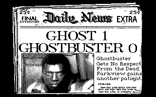 Si les quatre chasseurs de fantômes sont internés à Parkview, la partie est terminée. Sinon, vous pouvez faire évader vos copains en choisissant le tableau de statut en haut à gauche (la colonne "Out" contient les détenus). Vous descendez en rappel le long du bâtiment et devez trouver les chambres dans lesquelles sont enfermés vos collègues. Le manuel prétend qu'un détail permet de reconnaître ces chambres de l'extérieur, je n'ai jamais trouvé lequel ! Prenez de l'élan, et passez par une des fenêtres. Si à l'intérieur vous tombez sur des matons, il vous faudra les esquiver lorsqu'ils se jettent se vous. Pour sortir, placez-vous devant la fenêtre et sautez quand la corde apparaît. Ne traînez jamais ni à l'extérieur ni à l'intérieur, ou les matons vous piègeront.