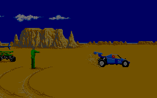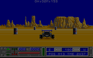 African Raiders s'inscrivait dans cette longue tradition sauf que cette fois l'action ne se passait pas sur le bitume mais en plein désert. Dans cette course qui est sensée s'identifier à un Paris-Dakar, vous devez concourir pour remporter la victoire. Il y a 5 étapes en tout avec des distances variables qui rendront votre course plus ou moins longue. Pour ne pas vous perdre, vous devez suivre la piste balisée par des barils de pétrole. La course ne varie que peu mais le sentiment de fun est là.