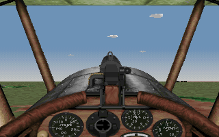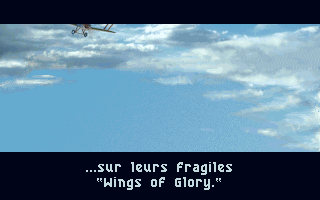 Le développement de Strike Commander et de son moteur RealSpace a coûté cher en jours/homme à Origin, il est donc logique que la compagnie américaine cherche à l'amortir : après Strike Commander, Wing Commander Armada et Pacific Strike, voici donc Wings of Glory, qui transpose ce moteur dans l'univers de la Première Guerre Mondiale. Evidemment, on ne pilote pas un Sopwith aussi facilement qu'un Rapier : le seul moyen de repérer un ennemi est de tourner la tête, la seule arme disponible est la mitraillette (et parfois une bombe)... Il faudra s'accrocher dans les premières missions, car vous commencez avec un vieux coucou bas de gamme très difficile à manoeuvrer, et les avions ennemis ont à peu près la même couleur (vert avec un peu de jaune) que votre escadrille (vert avec un peu de bleu), ce qui rend les combats assez confus. Heureusement, plus tard, les avions allemands sont d'un violet du meilleur goût, et on vous proposera des avions plus maniables. On retrouve dans Wings of Glory les qualités des autre jeux de pilotage d'Origin, comme la variété des missions : patrouille, éliminations d'appareils ennemis (avions ou zeppelins), combat contre un as de l'aviation (de toute évidence inspiré du Baron Rouge), infiltration d'une base allemande avec un de leurs avions... On en retrouve aussi certaines grosse ficelles scénaristiques : le héros bellâtre qui a des principes et accepte de se sacrifier pour son pays, le supérieur sévère mais juste, la jolie paysanne, le traître de service (ça me rappelle un épisode de "Black Adder")...