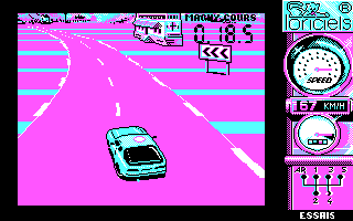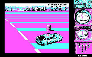 Le jeu, cependant, reste assez simpliste, malgré le niveau de simulation élevé pour 1988. Les contrôles de la direction se font avec les flèches gauche et droite, on accélère avec la flèche haut, on ralentit avec la flèche bas. Du gameplay basique, mais qui procurait quand même pas mal de fun, le jeu bénéficiant d'une réalisation très bonne pour l'époque, et qui parvient même à faire oublier qu'il tourne en CGA, la norme d'alors sur les compatibles PC.