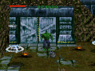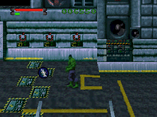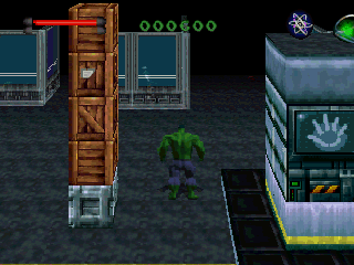 Ce brave Hulk doit tabasser tout ce qui se présente, cogner dans les murs (c'est gratuit mais ça défoule), casser des objets (ça augment le score, et on trouve parfois des bonus), empiler des caisse, éviter des dalles piégées et activer des interrupteurs qui ouvriront des passages. Outre son niveau d'énergie (Hulk est fort, mais pas invincible), on remarque une barre d'énergie gamma verte qui autorise Hulk à utiliser ses super-pouvoirs comme le Sonic Clap (un faisceau d'énergie gamma), le Floor Hammer (cela consiste à fracasser le sol), ou le Vortex. Ces coups sont plus puissants que les coups de base et peuvent atteindre des ennemis trop loin ou en hauteur.