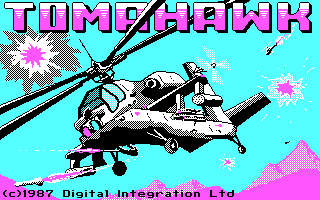 Tomahawk est un des premiers jeux écrits par Digital Integration. C'est un simulateur d'hélicoptère qui tente de reproduire le pilotage des ces appareils : poussée des moteurs ('A' et 'Q'), variation d'altitude ('Z' et 'S') et rotation latérale ('W' et 'X'). Le paysage est très limité, sans relief autre que quelques pyramides transparentes qui font office de montagne. Tout crash se solde immédiatement par un plantage du programme ! Au moins, il y a quatre missions jouables de jour comme de nuit, mais Tomahawk ne fera guère le poids quand Gunship sortira.