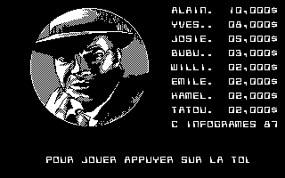 Lancement sous DOSBoxChoisissez d'émuler un écran CGA ("machine=cga" dans la section "[dosbox]" du fichier de configuration DOSBox), sinon le défilement de l'écran fera bugger le jeu.