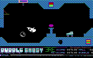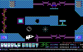 Bubble Ghost exploite plutôt bien les capacités des PCs de 1987. Le mode EGA est reconnu, ce qui était encore trop rare, les graphismes sont dépouillés mais clairs, et les bruitages suffisants (pas de musique atroce pendant la partie, là aussi c'est à souligner). La maniabilité est elle aussi très bonne : on fait tourner le fantôme avec 'A' et 'Z', la barre d'espace permet de souffler plus ou moins fort (la bulle réagit fort bien). Cela en fait un des rares bons jeux d'action et de réflexes sortis à cette époque sur PC. C'est aussi un des jeux d'ERE Informatique qu'Infogrames a exploité le plus longtemps, avec un remake intitulé Bubble+ pour Amiga et ST en 1990 (sans rien reverser à ERE Informatique), une version Gameboy, et sur quelques compilations.
