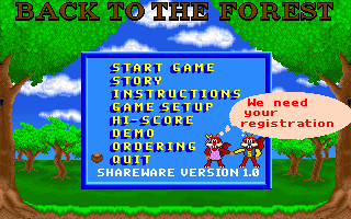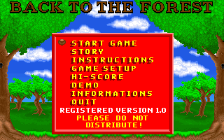 LancementLes versions complètes et shareware fonctionnent avec DOSBox (testé avec la version 0.74). Lancez d'abord le fichier backfor.exe pour décompresser les fichiers de jeu et ensuite vous pourrez jouez grâce au fichier FOREST.EXE.