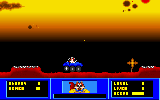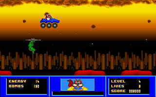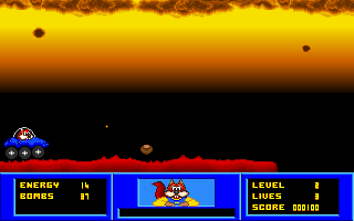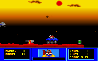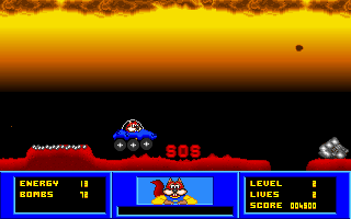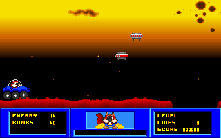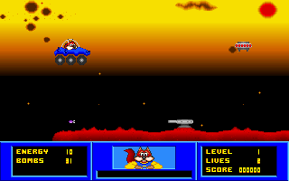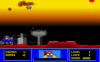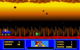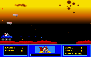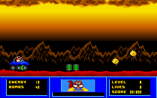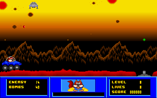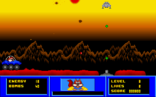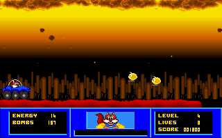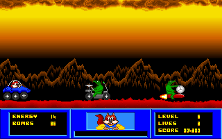 GameplayLa version shareware est composée de 2 niveaux tandis que la version complète en contient 6. On commence la partie avec 3 vies. Possibilité de reprendre la partie où on en était après un Game Over. Pas de limite de temps, par contre on a un nombre de points de vie et de tirs limités. Il est possible de récupérer des munitions, noisettes et super noisettes pour restaurer sa santé. Le scrolling horizontal est automatique. Il est possible de commencer par la mission que l'on veut.
