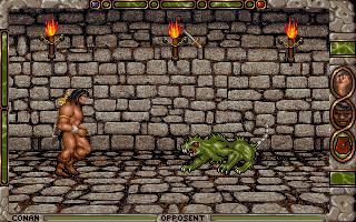 Mais que manque-t-il alors que ce titre s'annonçait techniquement bien pensé et immersif ? Des combats à la hauteur. Car Conan n'est pas connu pour être un poète mais plutôt un homme traitant de diplomatie à coup de massue... Or, les combats sont particulièrement difficiles : la faute à une absence de joystick mais surtout à la réalisation défaillante. Tout ceux qui se souviennent des combats épiques à l'épée de Defender of the Crown vont être servis. Nous avons le droit à la même chose... Mais ce qui était un passage optionnel dans Defender of the Crown est obligé dans Conan et à de trop nombreuses reprises... A terme, c'est la mort garantie... Voilà qui lassera nombre de joueurs.