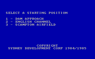 Pour ne pas changer les bonnes recettes, vous êtes donc aux commandes d'un Lancaster, bombardier britannique, au cours de la seconde Guerre Mondiale. Le "Lanc" était l'un des avions les plus prisés côté britannique en raison de sa capacité à emporter des charges explosives bien supérieures à ses concurrents. C'est ce qui explique qu'il ait été équipé de bombes rebondissantes pour détruire les barrages de la Ruhr en mai 1943. C'est cette mission unique que vous simulez. Le jeu vous propose en effet trois missions ayant toutes le même objectif : faire sauter un des barrages en territoire allemand. La première est une mission facile comparativement aux deux autres.