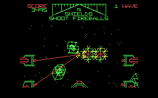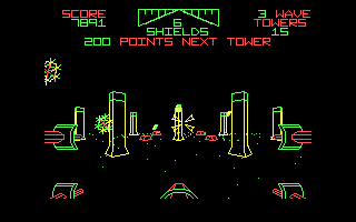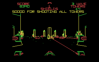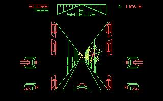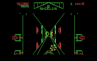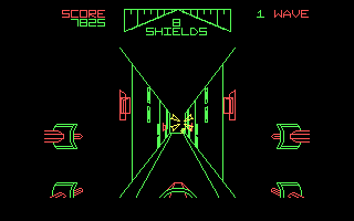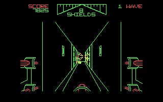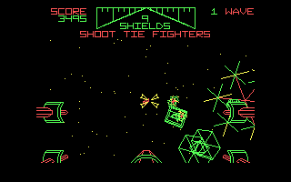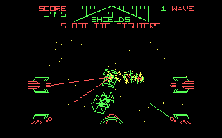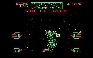 Bienvenue dans Star Wars : le jeuIl s'agit ici de l'un des premiers simulateurs de combat spatial (pour ne pas dire le premier réussi). Le titre se présente comme un jeu de tir en vue subjective (vous ne voyez que les ailes de votre X-Wing). C'est lui dont vous avez la charge pour mener l'assaut. Le combat est divisé en trois phases : lors de la première, vous luttez contre une escadrille de chasseurs TIE. Lors de la seconde, vous faîtes face à des tours, qui représentent la DCA ennemie à la surface de l'étoile de la mort. Lors de la dernière, vous êtes dans une tranchée qui vous conduit au moment de tirer dans le point faible de la base ennemie. Bref, la dernière partie reprend la trame du film (la présence de Dark Vador en moins). Pour faire face aux ennemis, les canons tireront à tout-va tandis que vous aurez un nombre limité de boucliers (qui remplacent ici les vies). Doté de graphismes en polygones sur fond noir, l'animation est très fluide et ressemble parfois à ce qui est vu dans le film.