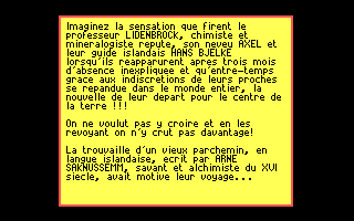 En 1988, Chip se lançait dans une adaptation très libre qui lorgnait plus vers le souffle épique des longs métrages hollywoodiens que d'une transcription fidèle de l'oeuvre de Jules Verne. Voyage au centre de la terre est le type de jeu arcade-action qui n'existe plus aujourd'hui. La structure est tout à fait caractéristique d'une époque où l'Atari et l'Amiga trônaient sur le marché des jeux et où le joystick régnait en maître. Le jeu en est le reflet en proposant une série d'actions pas toujours convaincantes.
