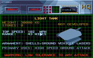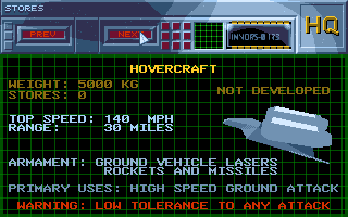 Description et avisIci, ce sera la guerre ! Dans un jeu de simulation aérienne datant de 1992, Psygnosis, ne vous laisse guère le choix. A la manière des scénarios binaires que vous trouvez dans les jeux d'action, vous devrez prendre le contrôle de l'un des 6 engins à votre disposition pour ralentir la production d'une arme mortelle par une peuplade hostile, terrassée après un hiver nucléaire, et avide de revanche. Avec ce gain de temps, une arme de destruction massive sera mise au point, histoire de faire comprendre qui est le plus fort.
