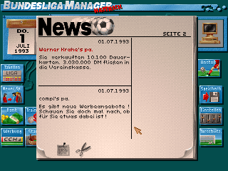 Le jeu est donc à classer parmi les simulations sportives mais reste confiné à l'Allemagne. Exit donc les championnats anglais, français... qui constituaient le support pour la majorité des jeux.