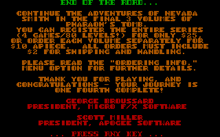 Le jeu était distribué à l'origine par la société Lone Star Micro, sous le titre de Pharaoh's Pursuit, sans distribution shareware par épisode comme par la suite.