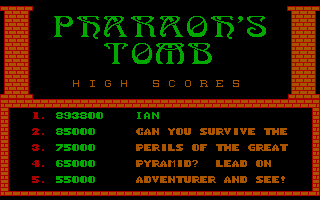 Pharaoh's Tomb est un titre sympathique, dont l'unique défaut est d'être sorti trop tard. Complètement ancré dans l'esprit des jeux de plate-formes des années 80, il fait pale figure par rapport à un titre comme Rick Dangerous ou Dangerous Dave.