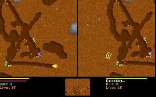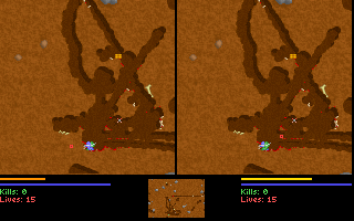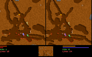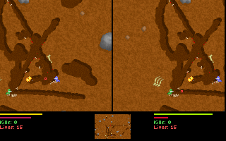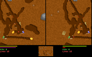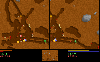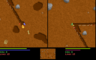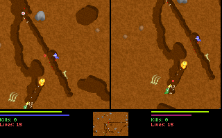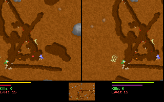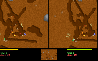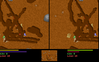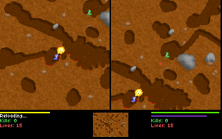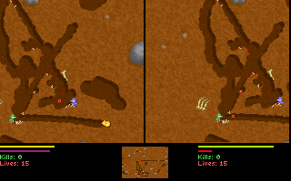 Le jeu, en plus d'être en temps réel, permet de creuser dans toutes les directions, soit avec son ver (alterner gauche et droite rapidement), soit avec son arme si elle le permet (attention aux explosifs !).