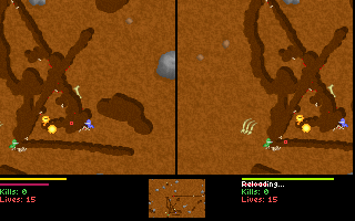 Les vers ayant tendance à saigner abondamment à la moindre blessure, et les armes laissant des douilles vides bien souvent sur tout le terrain, c'est vite le bordel. Le jeu est très nerveux.