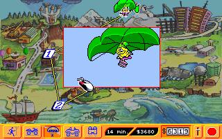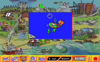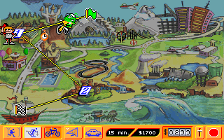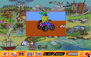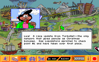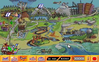 ObjectifGagner la course, selon le tracé qui se dessine sur la carte. Mais ne cherchez pas à utiliser une manette ni un joystick, car c'est avec votre tête que vous allez avancer. Pour entamer votre course, il faudra dépenser de l'argent pour faire face à vos besoins en véhicules adaptés : parapente, hors-bord, moto, vélo, voiture...Cette somme d'argent s'obtient en répondant à une série de questions posées sur l'écran de l'environnement où a lieu la course (milieu montagnard, ou littoral, ou urbain). Vous avez réglé le niveau de difficulté à "facile" ou "difficile", et vous marquez 700 points (dollars) par réponse juste, et on vous défalque 200 dollars par mauvaise réponse.