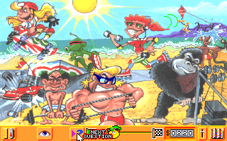 Faisons la course !Contrairement aux apparences, vous n'êtes pas en possession d'un jeu de Formule 1 ou d'une nouvelle simulation de rallye. Ce n'est pas non plus un jeu d'aventure pour les plus jeunes, ni même un éducatif au royaume de la mécanique. Vous venez d'ouvrir la page du descriptif d'un quiz, qui s'inscrit dans la Collection "Discovery" que Sierra a développée en 1991-1993.Cette collection, dirigée par les époux Cole, a fait naître des pépites comme les premiers Docteurs Brain (Castle et Island) ou Pepper's Adventures in Time. En apparence, Quarky and Quaysoo, petits elfes de l'espace, vous emmènent dans un monde aux couleurs de l'enfance. Et à regarder l'écran du menu, avec sa musique déjantée et ses bruitages cartoonesques, on sent un gameplay adapté aux plus jeunes. Mais quand vient le temps du challenge, on s'aperçoit que le jeu cible davantage la tranche 11/14 ans. Dans le menu, vous choisissez qui, de Quarky ou de Quaysoo, va conduire à vos côtés la course contre l'une des trois équipes de crétins antipathiques qui ont juré de vous faire manger l'asphalte. Vous réglez vos options, entrez votre pseudonyme, et hop ! C'est parti !