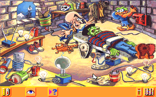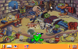Vous disposez d'une trousse à outils comportant un mètre, un baromètre, un ampèremètre, un thermomètre, et des mesures sont à effectuer lorsque certaines questions s'y prêtent. Chaque bonne réponse donne lieu à une animation amusante, dans le style d'un dessin animé, et chaque écran peut se visiter en cliquant sur le regard, ce qui permet de nommer les personnages présents et de se faire une idée du thème de cette page (électricité, chimie, mécanique...). Quand une réponse est fausse, on peut choisir de recommencer (et comme il y a trois propositions encadrées, cela permet de boucler ses points assez vite). Soit vous vous contentez de la somme initialement désirée, soit vous cherchez à prendre la plus grande somme d'argent. La somme des victoires finira par vous offrir une place en lettres d'or sur le podium du Hall of Fame.